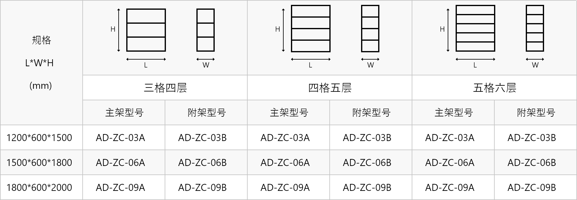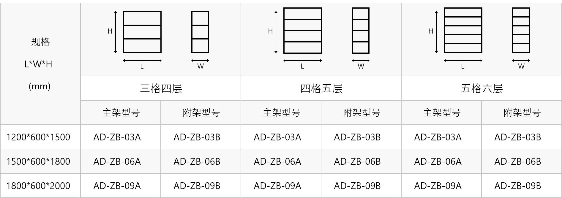 | 【常规尺寸】: | L1800/2000×W600×H1800/2000×4层 | |